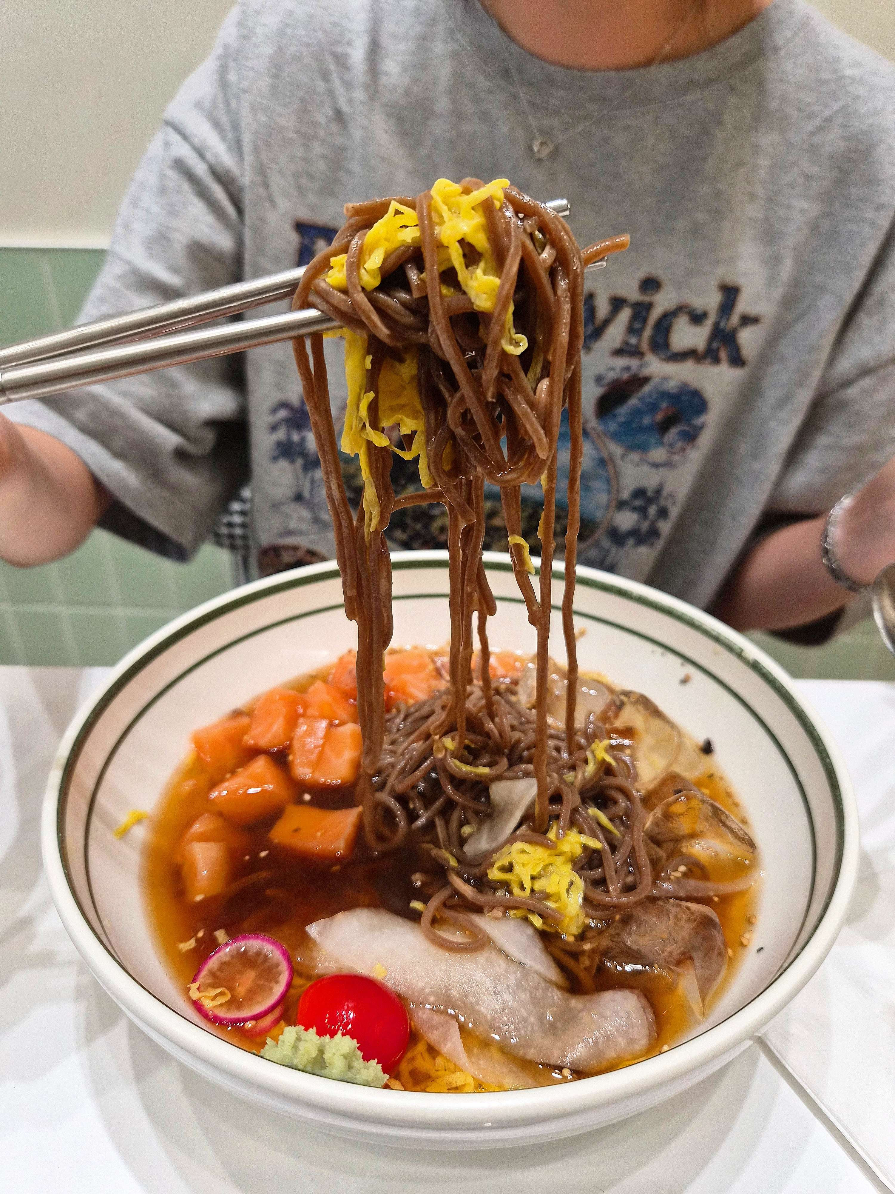 - 숙성연어 메밀소바 – 깔끔하고 시원한 메밀소바에 숙성연어가 올라가 있어 조합이 아주 훌륭했어요.