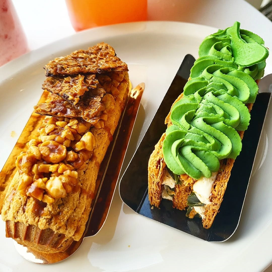 이 날 주문한 카라멜 에끌레어와 말차 밀푀유는 단순히 예쁜 비주얼을 넘어선 맛을 자랑했어요.