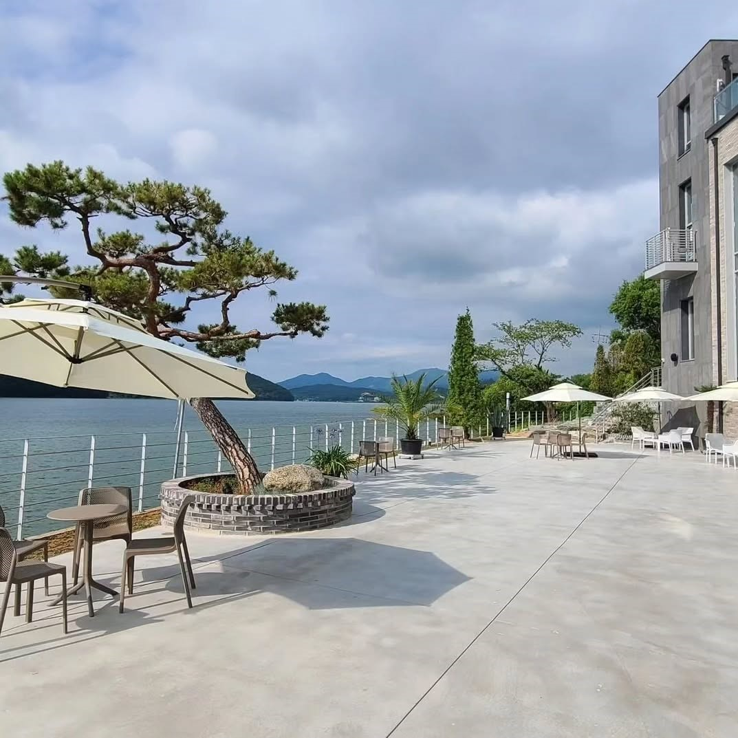 실내 좌석뿐 아니라 야외 테라스에서도 저수지 뷰를 감상할 수 있어서,