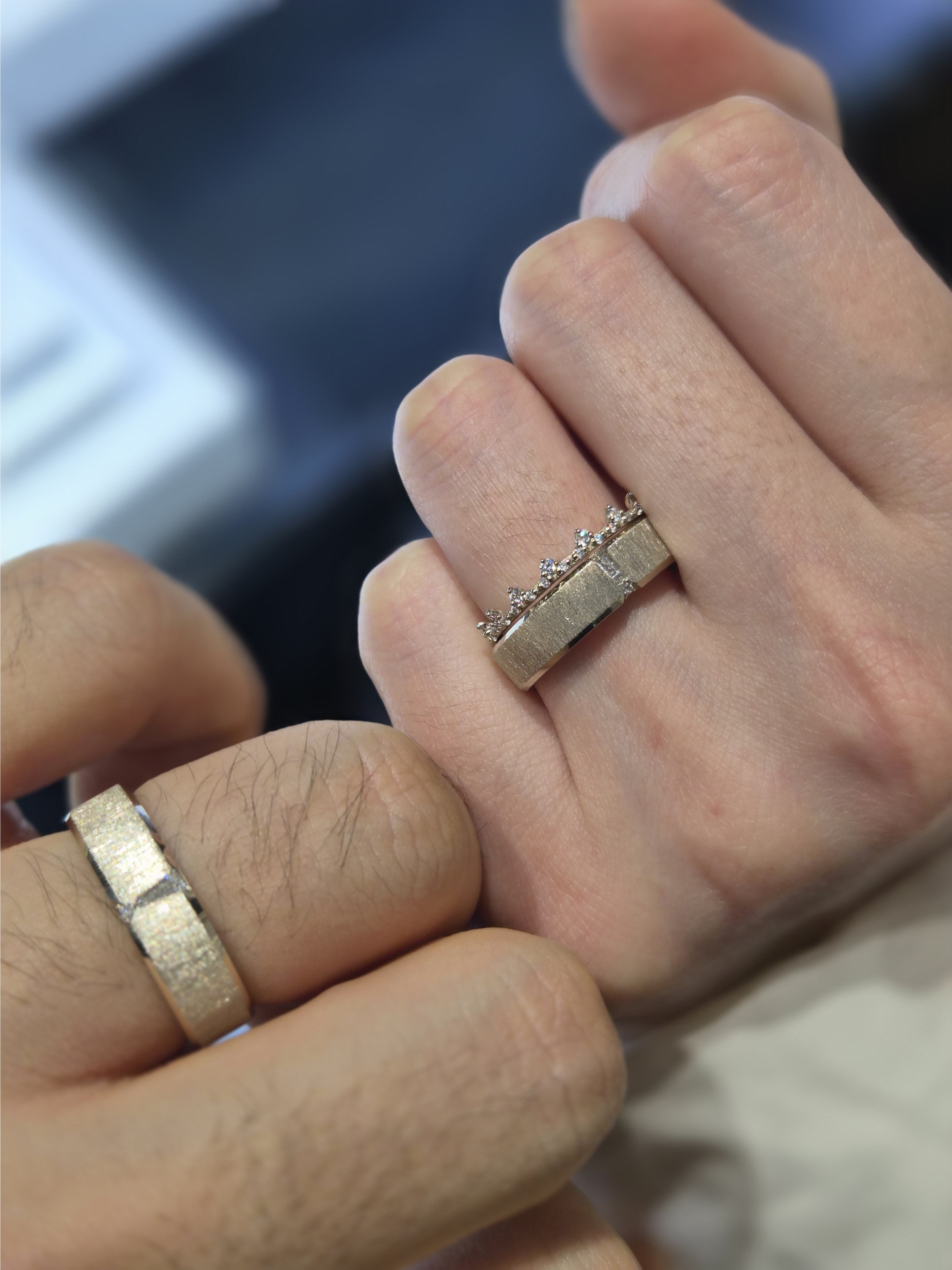 여러 디자인을 직접 비교해보면서 고를 수 있어서 좋았고, 고민 끝에 최종적으로는 사진에 나온 반지를 선택하게 되었어요!