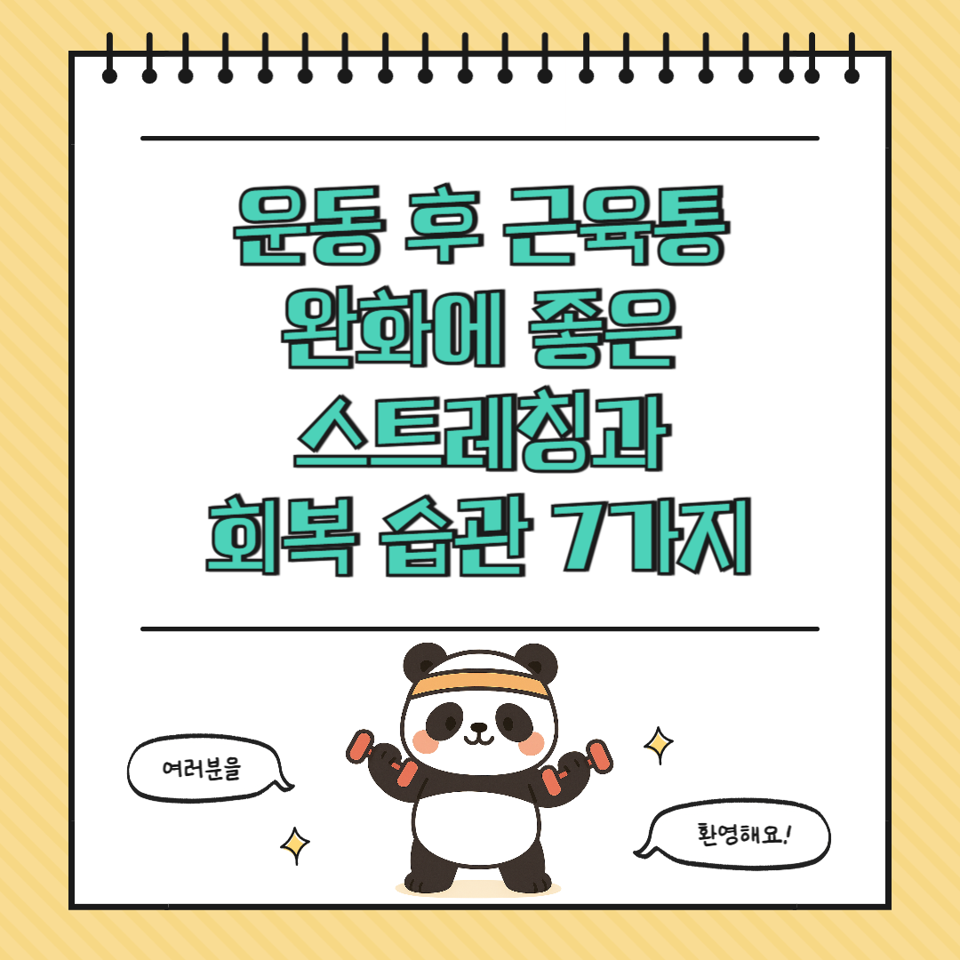 운동을 열심히 했는데 다음 날 근육통 때문에 고생한 경험, 누구나 한 번쯤 있으실 거예요. 운동 후 생기는 근육통은 자연스러운 현상이지만, 방치하면 일상생활에 불편을 주고 운동 지속에도 방해가 됩니다. 이번 글에서는 운동 후 근육통 완화에 도움이 되는 스트레칭과 회복 습관 7가지를 소개합니다. 초보자도 쉽게 따라 할 수 있는 방법들이니 오늘부터 바로 적용해보세요.